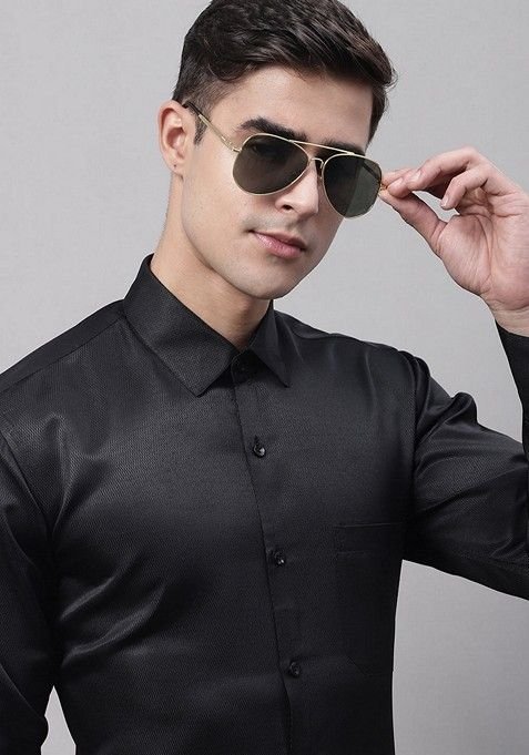 Experience timeless elegance with our Black Cotton Blend Shirt For Men, crafted to add a royal touch to your wardrobe.