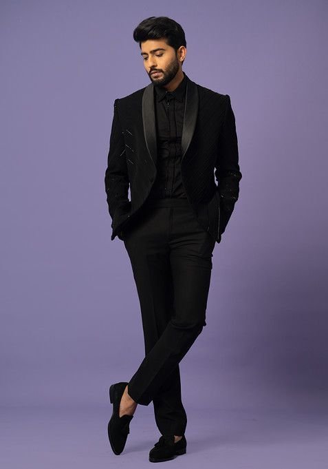 Pair this Black Solid Blazer Set For Men with matching accessories for a complete, graceful look.