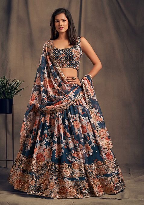 This Blue Embroidered Organza Lehenga Set is made from premium fabrics, ensuring comfort while keeping you stylish.