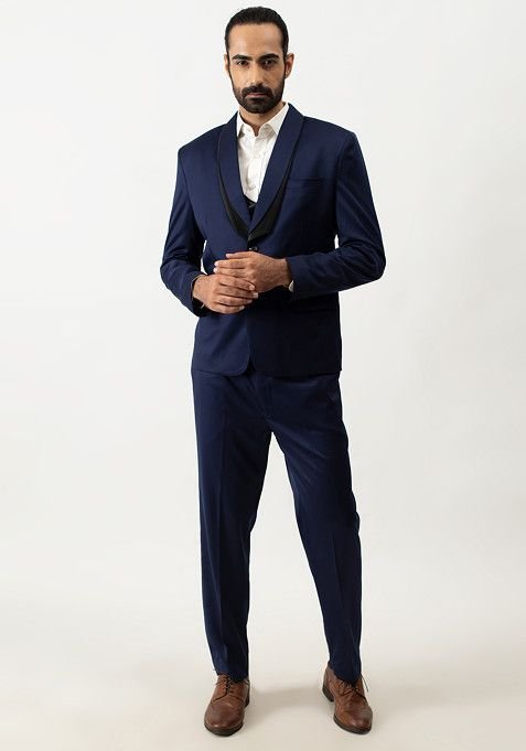 Designed to suit all body types, the Blue Satin Lapel Three Piece Suit Set For Men blends tradition with modern aesthetics.