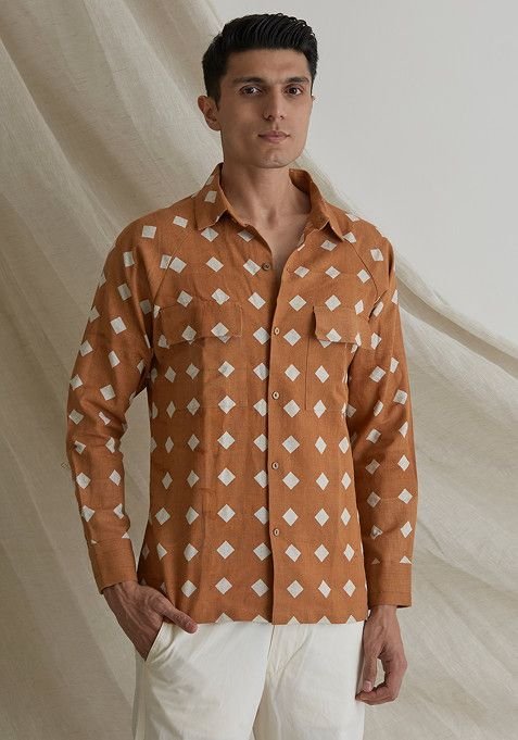 Designed to suit all body types, the Brown Diamonds In The Sky Printed Shirt blends tradition with modern aesthetics.