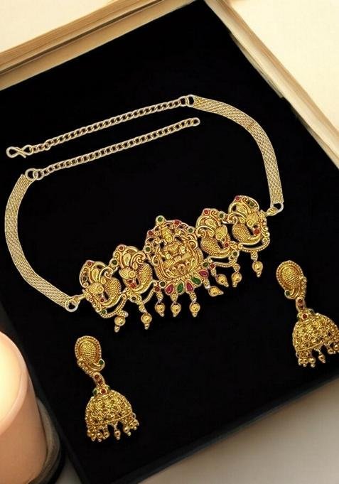 Designed to suit all body types, the Gold Peacock Design Necklace Set blends tradition with modern aesthetics.