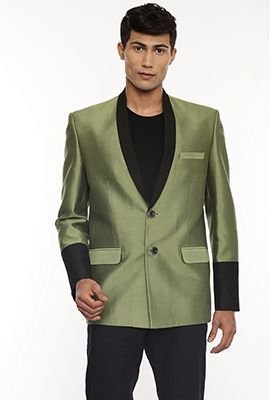 Experience timeless elegance with our Green And Black Two Button Blazer For Men, crafted to add a royal touch to your wardrobe.