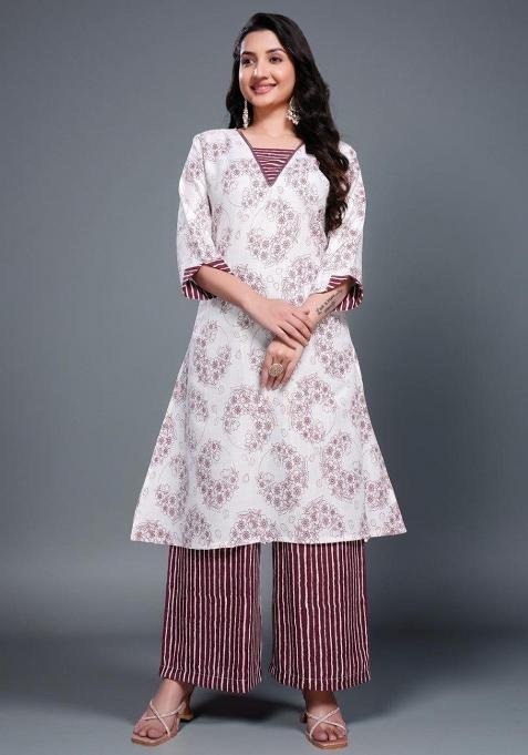 Designed to suit all body types, the Maroon Printed Cotton Kurta Set blends tradition with modern aesthetics.