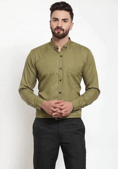 This Olive Cotton Shirt For Men is made from premium fabrics, ensuring comfort while keeping you stylish.