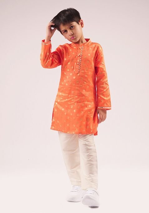 Designed to suit all body types, the Orange Embroidered Kurta With Pants (Set of 2) blends tradition with modern aesthetics.