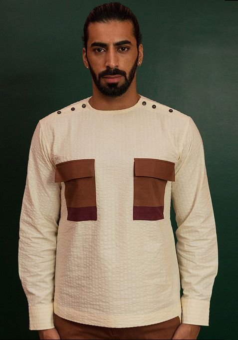 Designed to suit all body types, the Pastel Blue Mud And Moon Printed Shirt blends tradition with modern aesthetics.