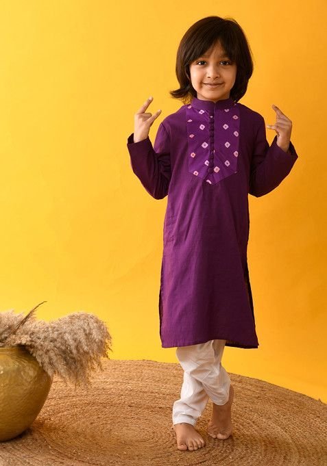 This Purple Dye Bandhani Print Kurta With Pajama (Set of 2) is made from premium fabrics, ensuring comfort while keeping you stylish.