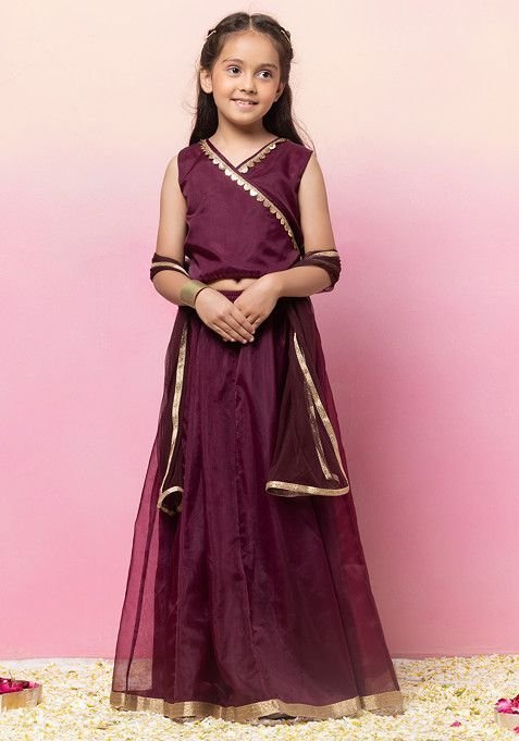 This Purple Organza Lehenga With Wrap Blouse And Dupatta (Set of 3) is made from premium fabrics, ensuring comfort while keeping you stylish.