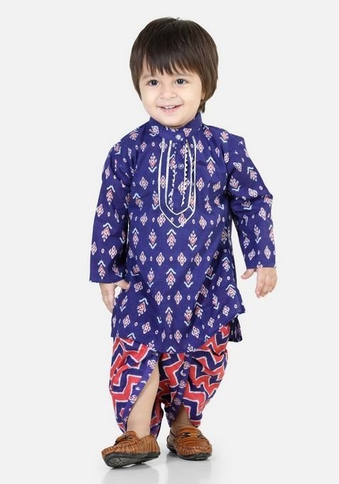 This Purple Printed Kurta With Dhoti Pants (Set of 2) is made from premium fabrics, ensuring comfort while keeping you stylish.