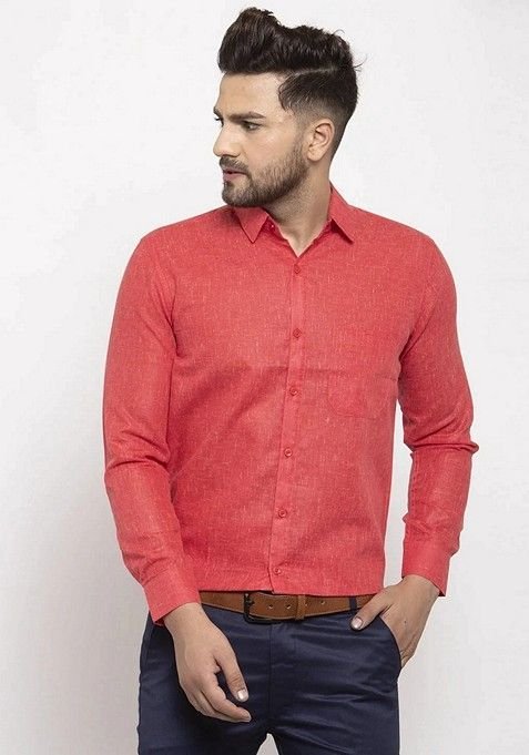 Experience timeless elegance with our Red Cotton Shirt For Men, crafted to add a royal touch to your wardrobe.