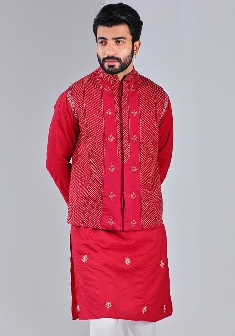 Designed to suit all body types, the Red Geometric Embroidered Nehru Jacket For Men blends tradition with modern aesthetics. Pair this Red Geometric Embroidered Nehru Jacket For Men with matching accessories for a complete, graceful look. This Red Geometric Embroidered Nehru Jacket For Men is made from premium fabrics, ensuring comfort while keeping you stylish. Experience timeless elegance with our Red Geometric Embroidered Nehru Jacket For Men, crafted to add a royal touch to your wardrobe. Perfect for weddings, parties, and festive occasions, this piece enhances your cultural charm.
