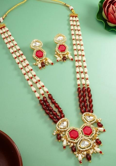 This Red Gold Plated Brass Jewellery Set is made from premium fabrics, ensuring comfort while keeping you stylish.