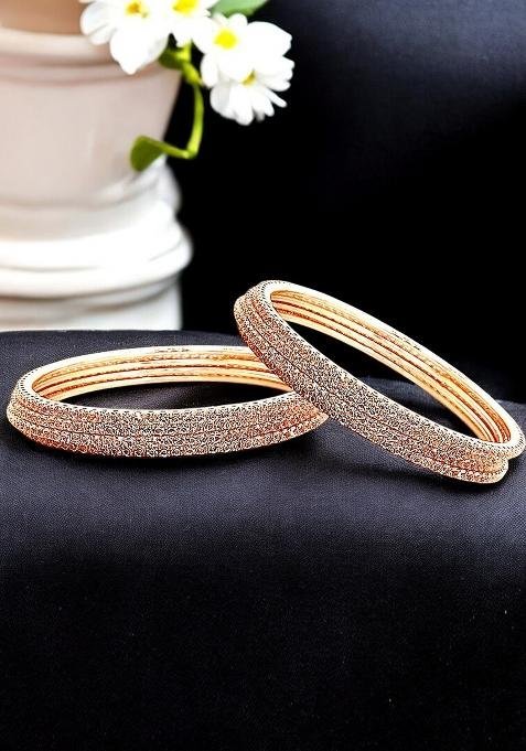 Designed to suit all body types, the Set Of 8 Rose Gold Plated Cubic Zirconia Studded Bnagle Set blends tradition with modern aesthetics.