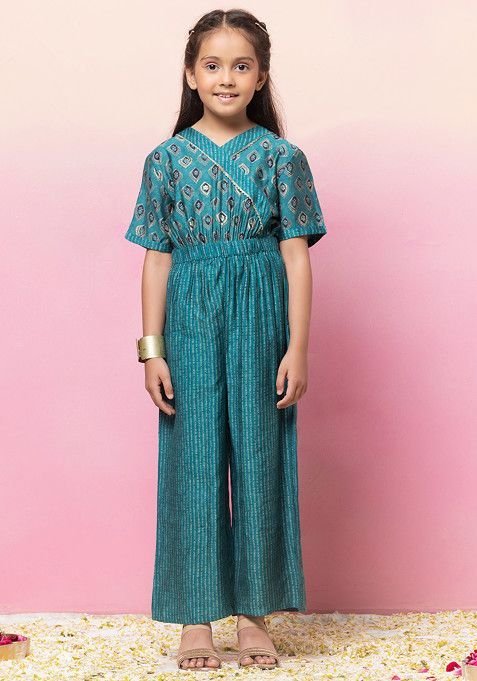 This Turquoise Green Boota Print Jumpsuit is made from premium fabrics, ensuring comfort while keeping you stylish.