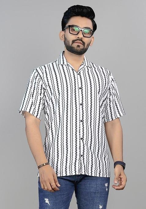 This White And Black Embroidered Pure Knit Circular Shirt For Men is made from premium fabrics, ensuring comfort while keeping you stylish.