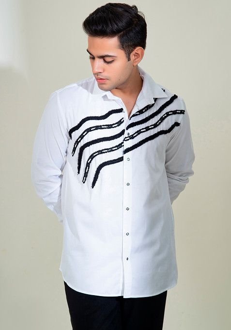 Pair this White Patterned Shirt For Men with matching accessories for a complete, graceful look.