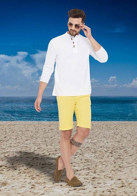 This White Solid Cotton Kurta For Men is made from premium fabrics, ensuring comfort while keeping you stylish.