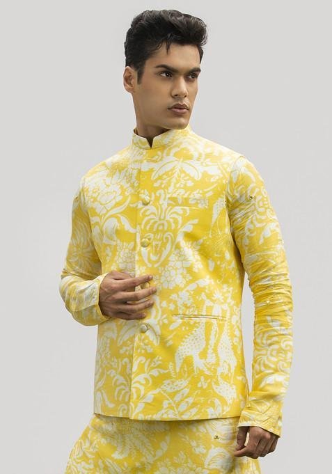 Be the first to review “Yellow Printed Bundi Jacket For Men”