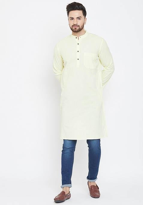 This Yellow Solid Cotton Kurta For Men is made from premium fabrics, ensuring comfort while keeping you stylish.